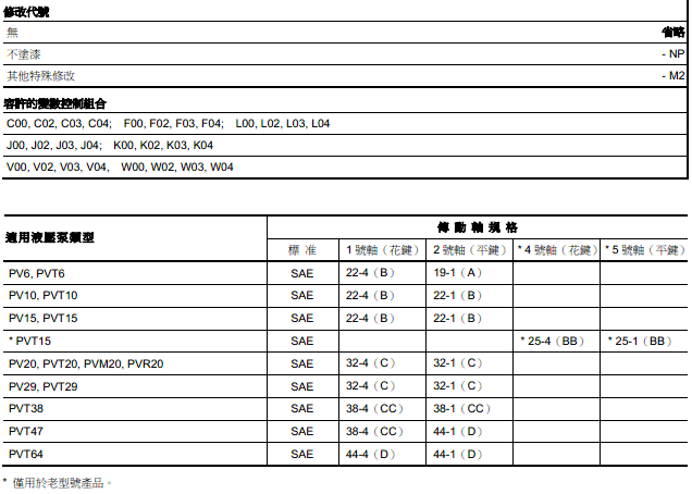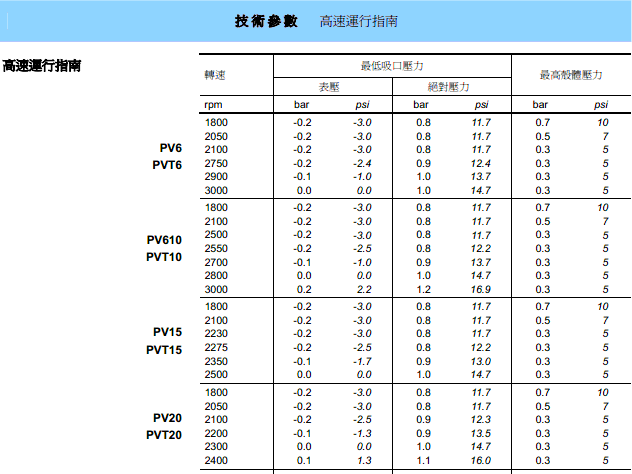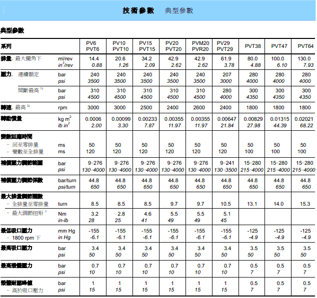 PVT6、PVT10、PVT15、PVT20、PVT29、PVT38、PVT47、PVT64等系列